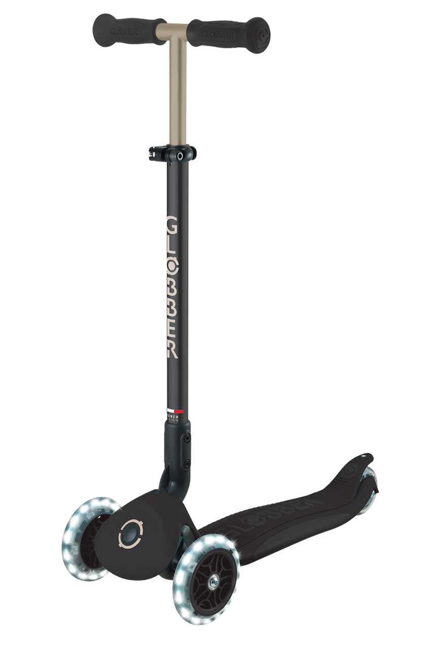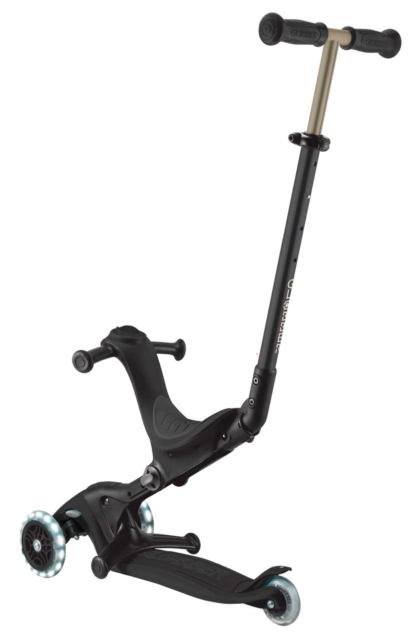 GLOBBER® 3in1 Scooter GO-UP Deluxe Lights mit Leuchtrollen (Schwarz)