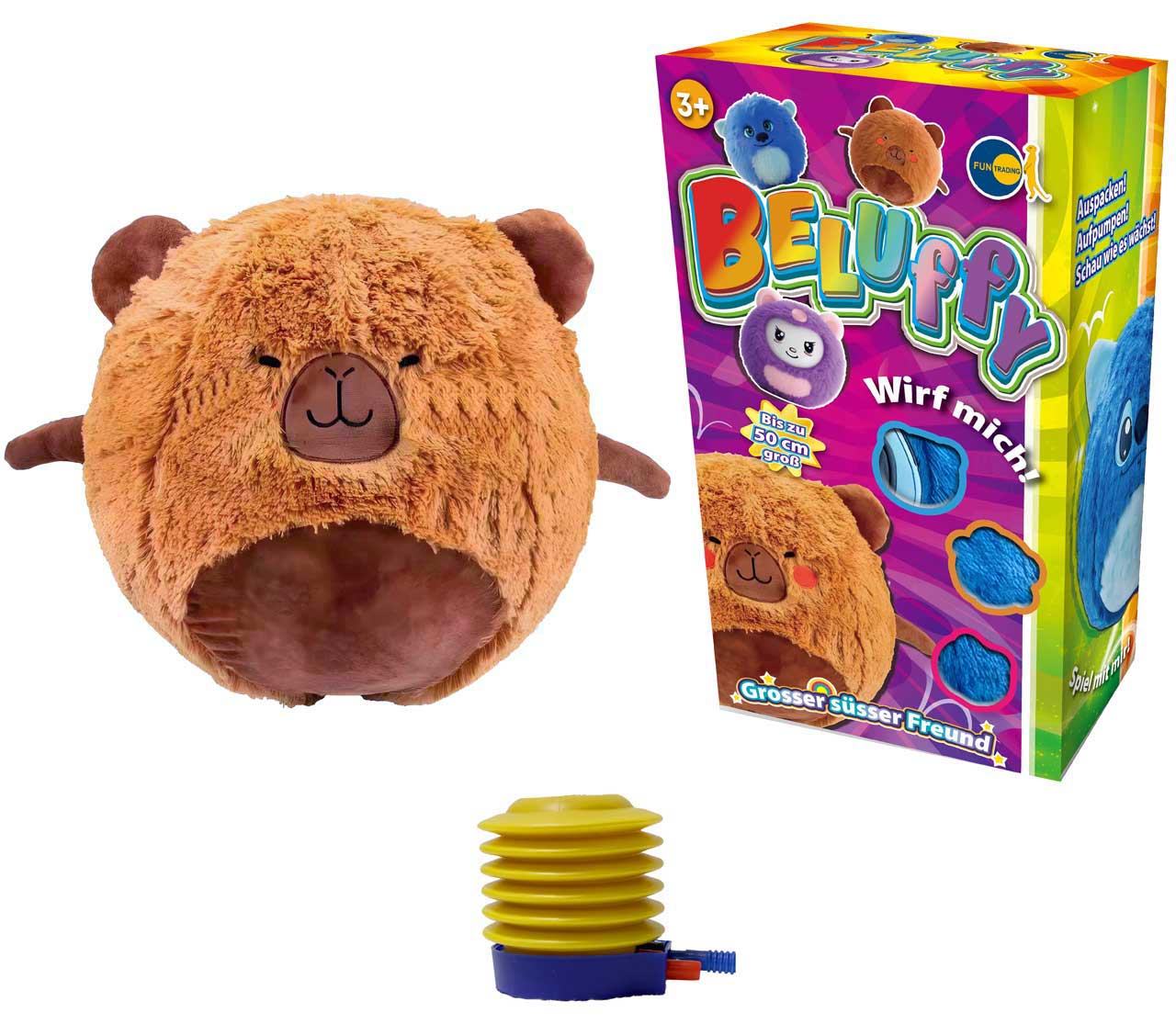 Suchst Du nach dem innovativsten Kuscheltier, das auch riesigen Spielspaß verspricht, dann sind die BELUFFY Plüsch-Springbälle genau das Richtige. Die Beluffy kommen kompakt verpackt zu Dir nach Hause. Mit der mitgelieferten Pumpe können Kinder mühelos ihren neuen Freund auf eine beeindruckende Größe von bis zu 50 cm aufpumpen.