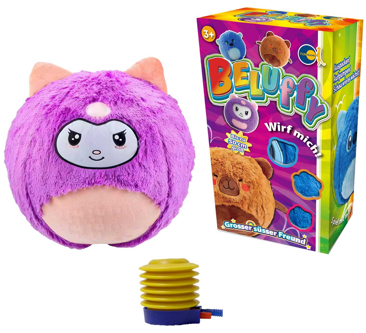 Suchst Du nach dem innovativsten Kuscheltier, das auch riesigen Spielspaß verspricht, dann sind die BELUFFY Plüsch-Springbälle genau das Richtige. Die Beluffy kommen kompakt verpackt zu Dir nach Hause. Mit der mitgelieferten Pumpe können Kinder mühelos ihren neuen Freund auf eine beeindruckende Größe von bis zu 50 cm aufpumpen.