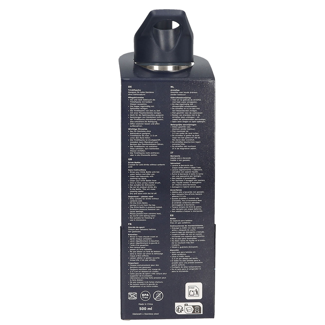 Maße: Die Flasche ist ca. 7,7 x 7,5 x 25 cm groß. 500 ml Fassungsvermögen