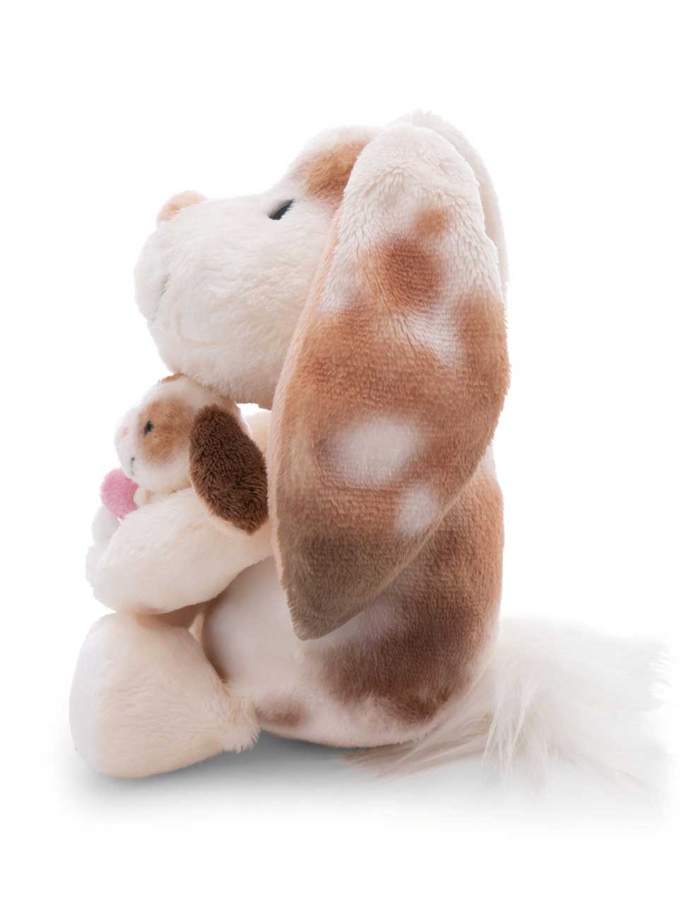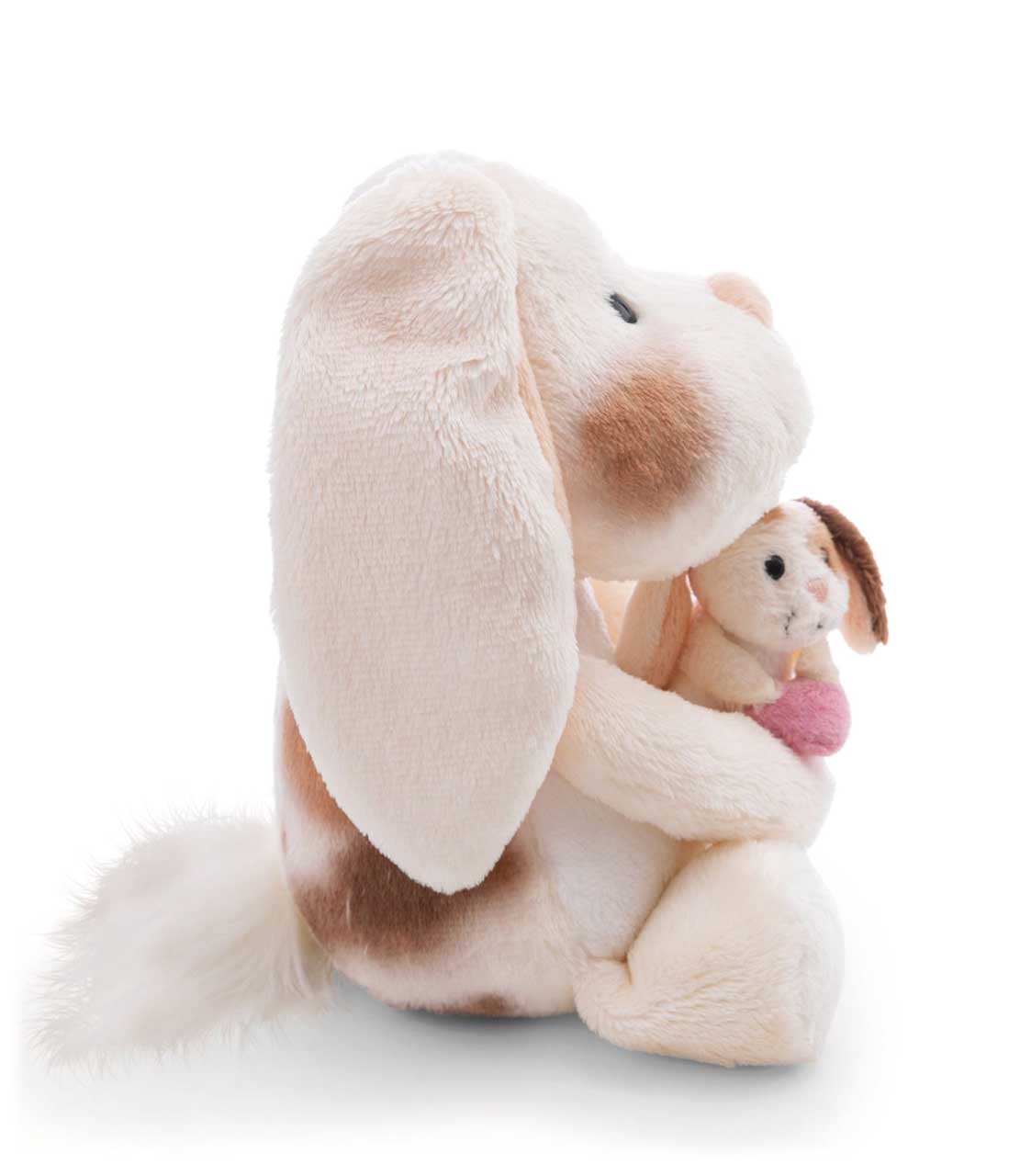 So niedlich... Der 20 cm große, flauschige Plüschhase in zarten Braun- und Cremetönen mit einem rosa gestickten Herz am rechten Fleck verkörpert auf bezaubernde Weise die tiefe Verbindung zwischen Mutter und Kind. Mit ihren langen Schlappohren und...