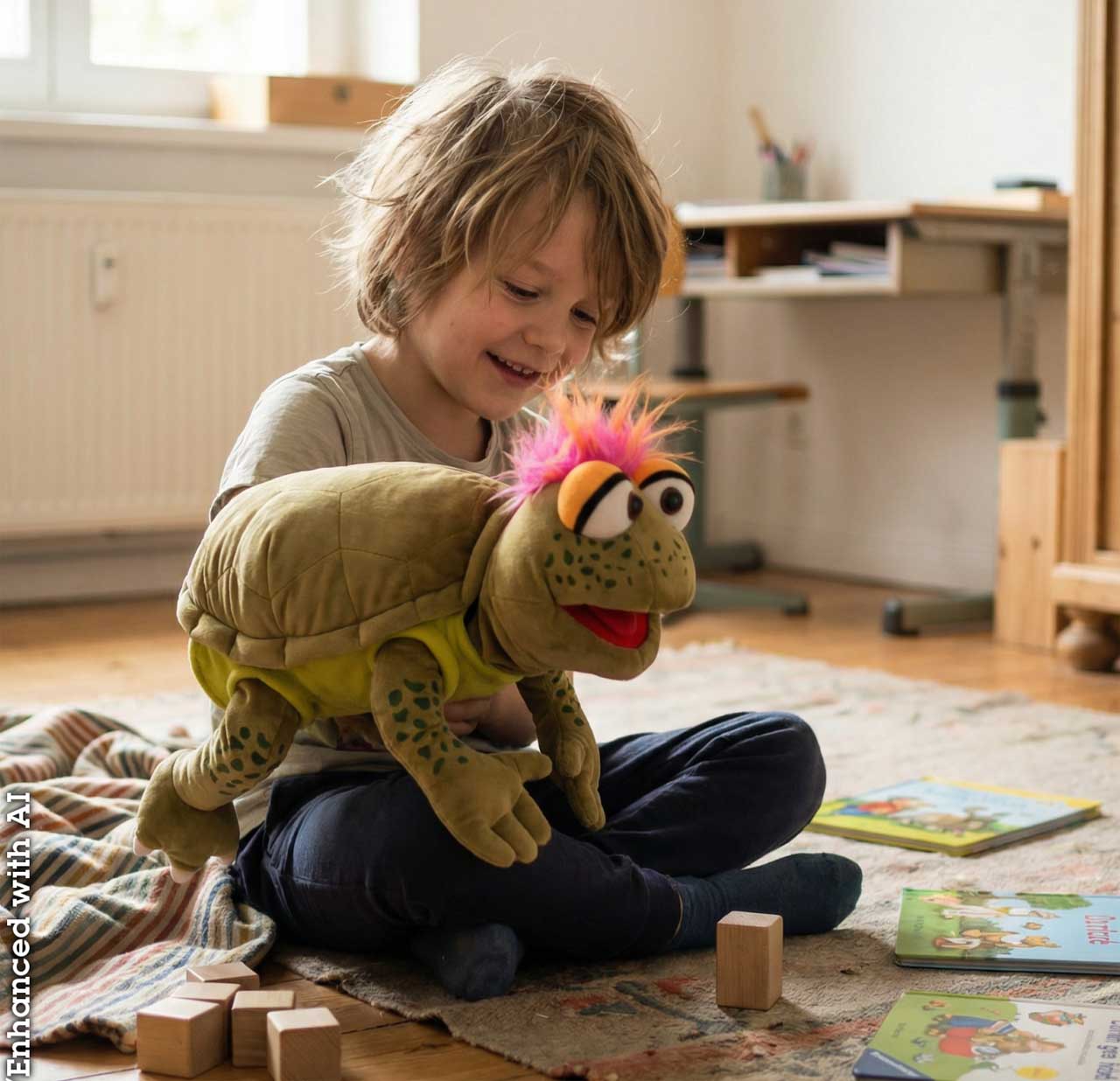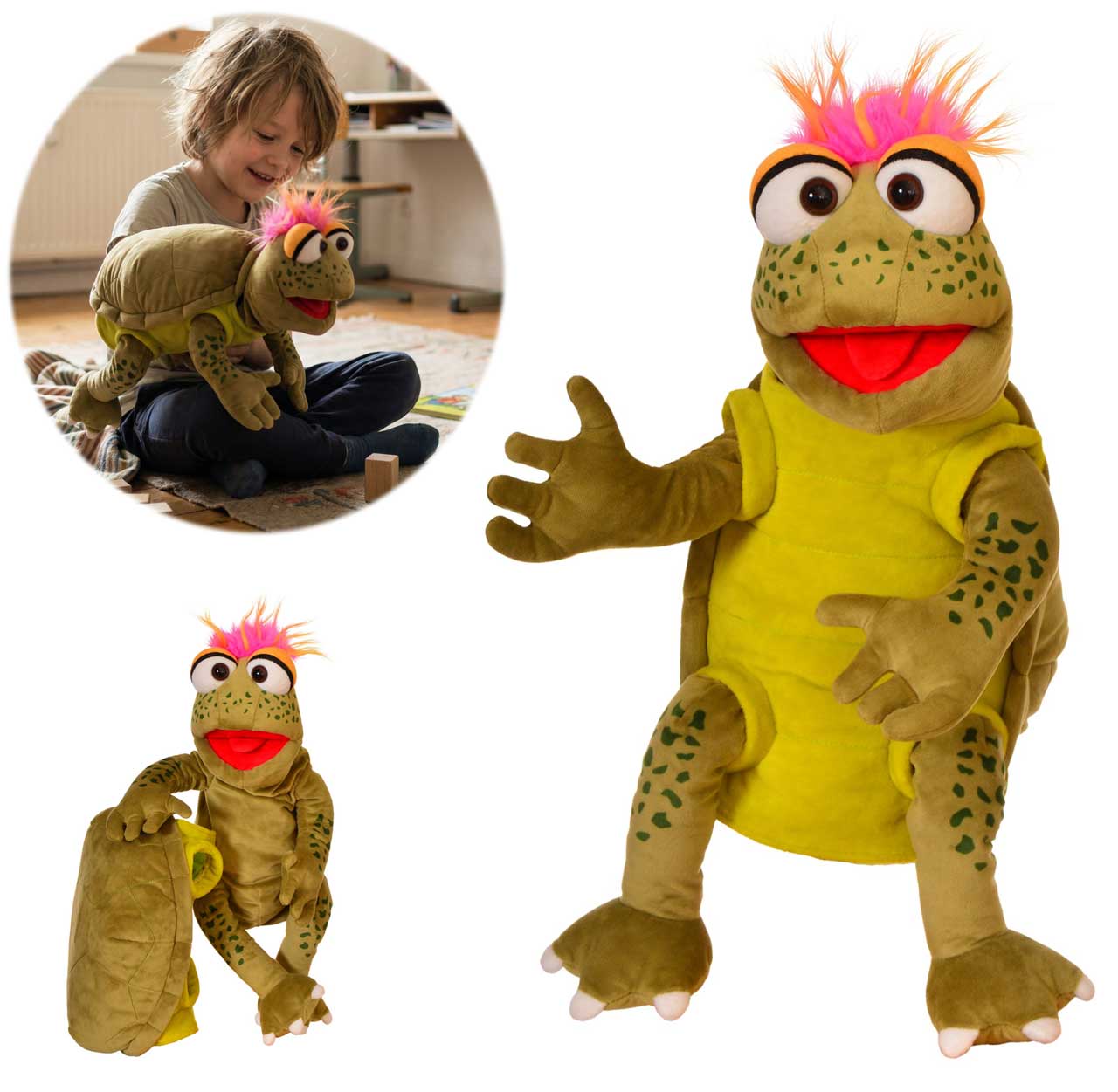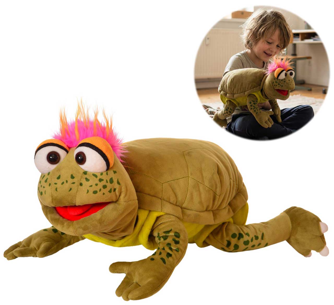 Ich bin richtig cool... Lässiger geht es nicht. Slow Moe bringt so schnell nichts aus der Ruhe. Panzer komplett ausziehbar. Maul und Kopf bespielbar. Mit ein wenig Fantasie wird die Schildkröte sogar lebendig. Maße: Die Schildkröte ist ca. 46 cm l...