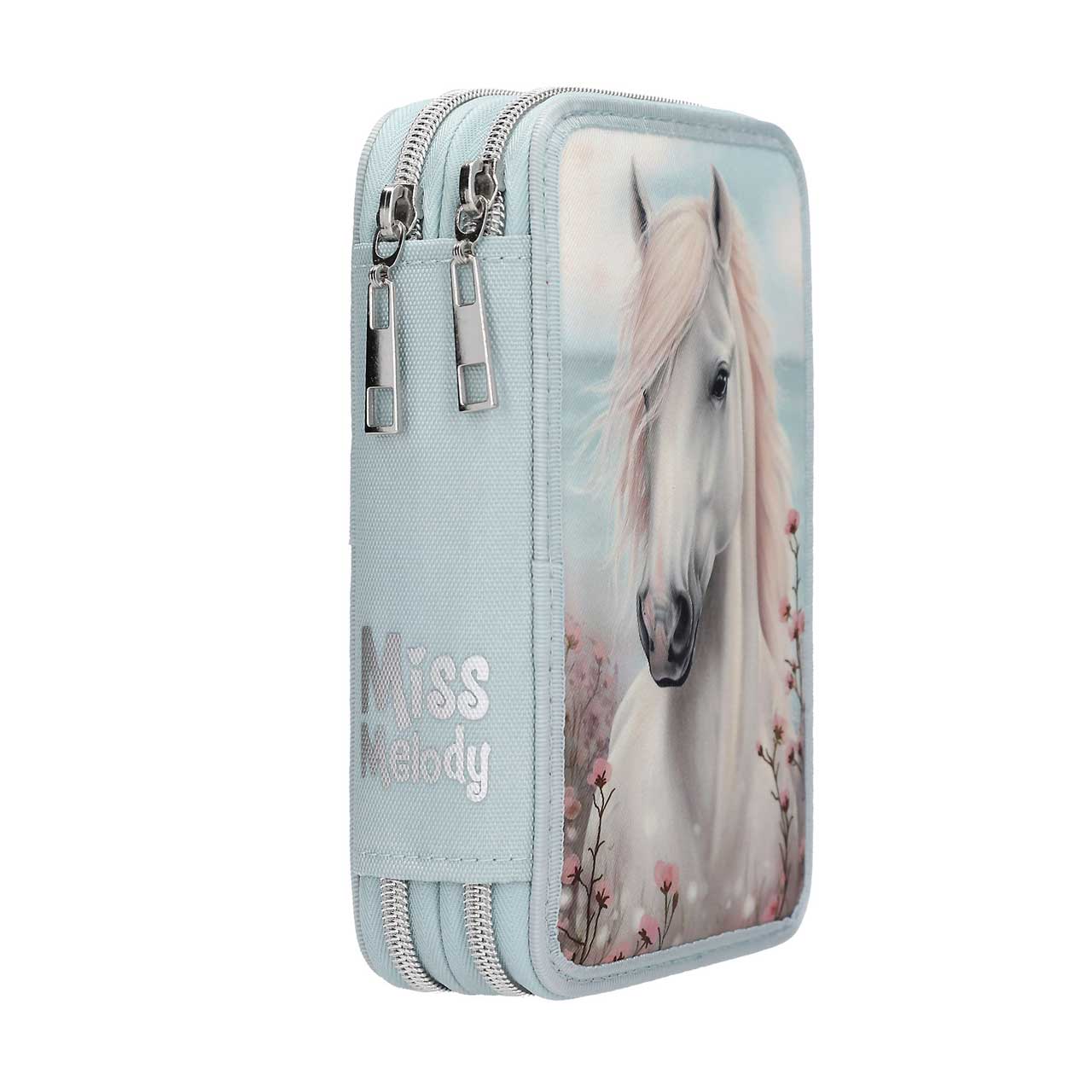 DEPESCHE® Miss Melody 2 Fach Federtasche mit Pferde-Motiv (Blasses Hellblau)