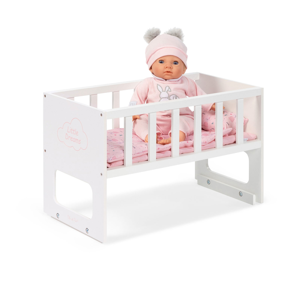 Maße: Das Puppenbett einzeln ist ca. B 28 x L 53 x H 34 cm groß. Das Innenmaß ist ca. B 24 x L 49 cm groß. Demnach passt die beliebte Baby Born oder die Baby Annabell gut hinein. Für Puppen bis knapp 50 cm gut geeignet.