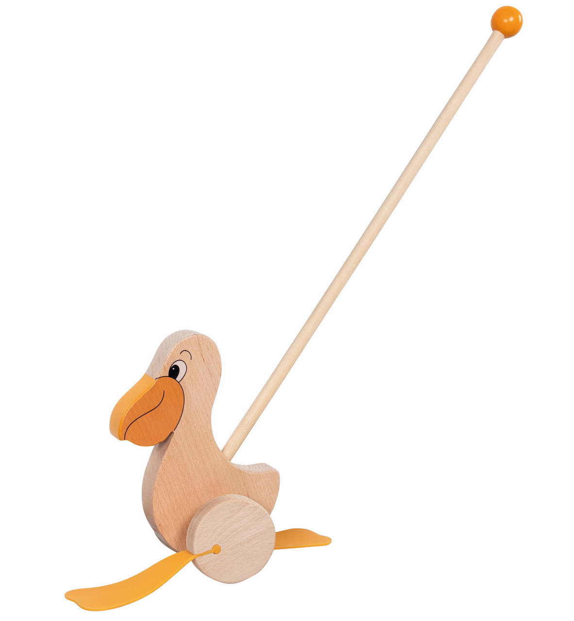 Maße: Der Pelican ist ca. 22 cm groß und die Schiebestange ist gut 60 cm lang.