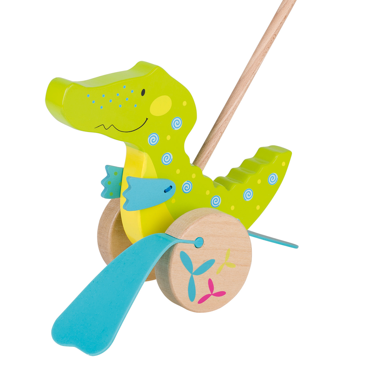 Maße: Das Krokodil ist ca. 19 cm groß und die Schiebestange ist gut 60 cm lang.