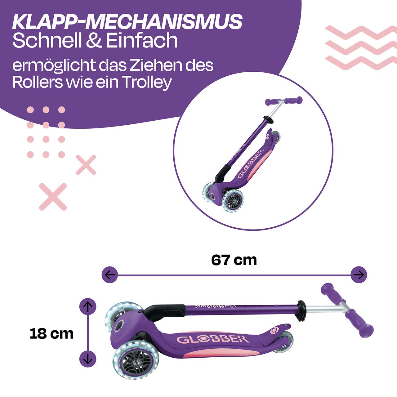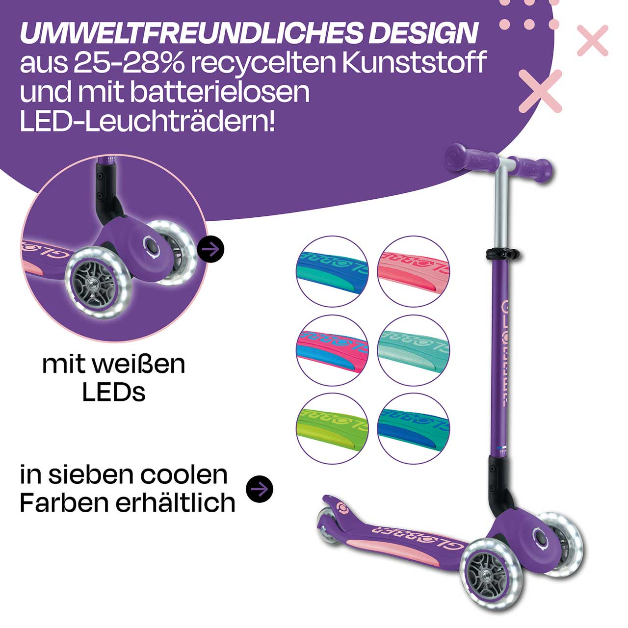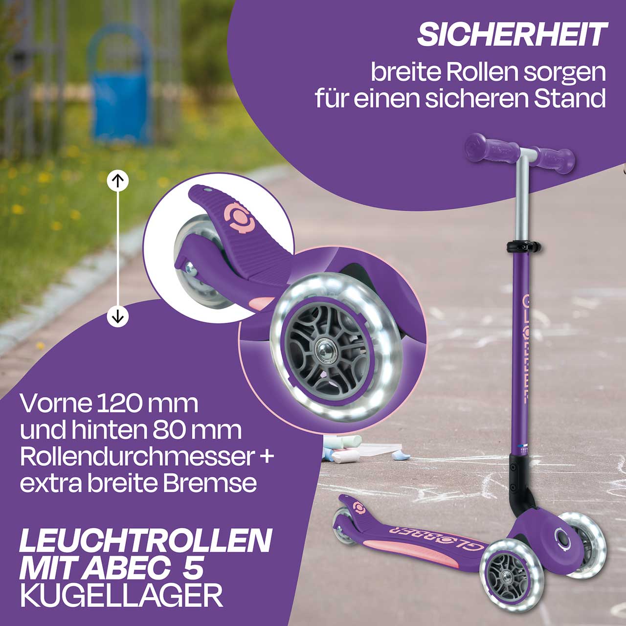 GLOBBER® Scooter Elite Lights mit Leuchtrollen (Lila)