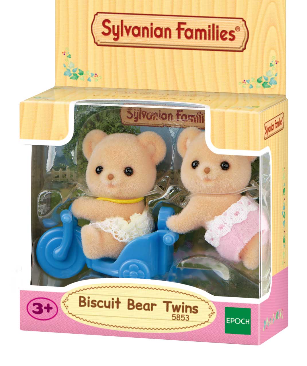Die Sylvanian Families Biscuit Bären Zwillinge Elio und Emily sind echte kleine Sonnenscheine. Elio fühlt sich in Gesellschaft am wohlsten. Er folgt seiner Familie auf Schritt und Tritt, erzählt fröhlich Geschichten oder verteilt große Umarmungen. Seine Schwester Emily ist immer hilfsbereit und jederzeit zur Stelle, wenn jemand Hilfe braucht. Gemeinsam sorgen die beiden für jede Menge Trubel in der Biscuit Bären Familie. Das Spielset enthält zwei samtig-weiche Bärenbabys, eines krabbelnd, eines sitzend, sowie ein kleines Dreirad. Die beweglichen Köpfe lassen die Babys lebendig werden und regen zu fantasievollen Rollenspielen an. Die Figuren sind ca. 4–5 cm groß, tragen Windeln zum An- und Ausziehen.