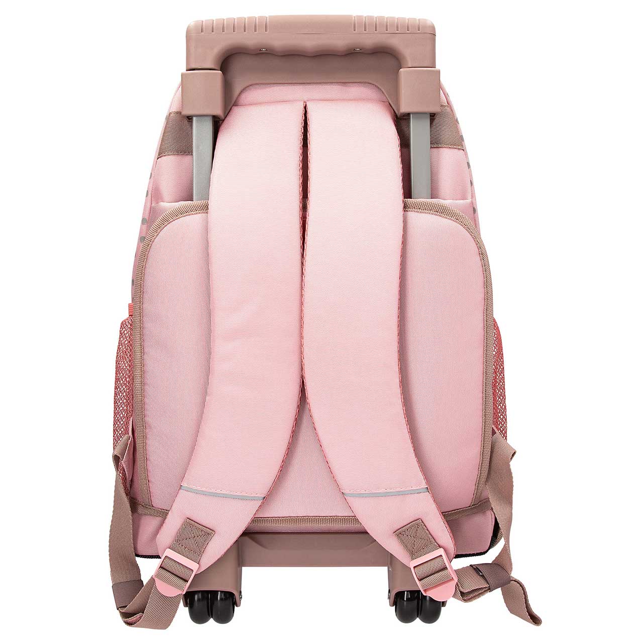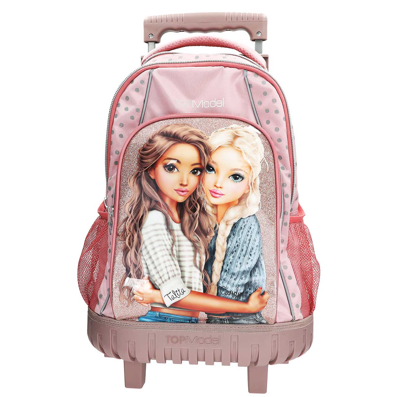 Lässig gepunktet... Der Schulrucksack-Trolley von TOPModel in Rosa mit grauen Punkten ist superpraktisch und mit dem großen Doppel-Modelmotiv auf Glitzerhintergrund auch super stylish. Drei Fächer, Teleskopgriff und leichtgängige Räder machen ihn ...