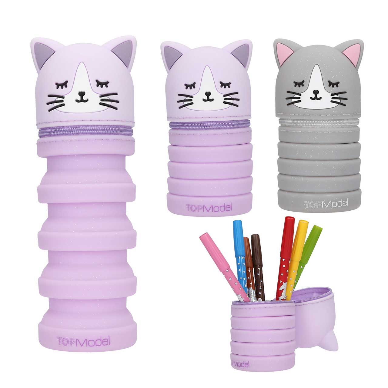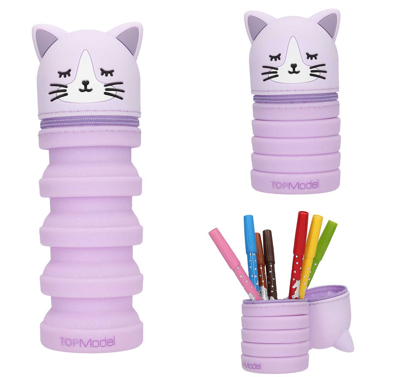 Federmäppchen mit niedlichem Katzenkopf... Die Feder-miau-mäppchen von TOPModel lassen sich zusammenschieben und auseinanderziehen, um gut an die Schreibutensilien zu kommen. Das Federmäppchen hat einen Reißvershluss und ein niedlichen Katzenkopf....